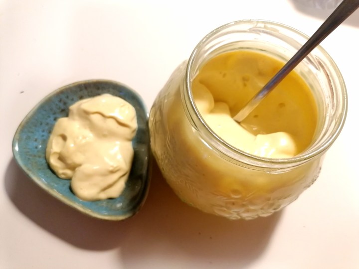 Pensavo tutto questo stasera mentre facevo la maionese, salsa maxima … una delle attività più creative che esistano e che mi riporta alla pittura.